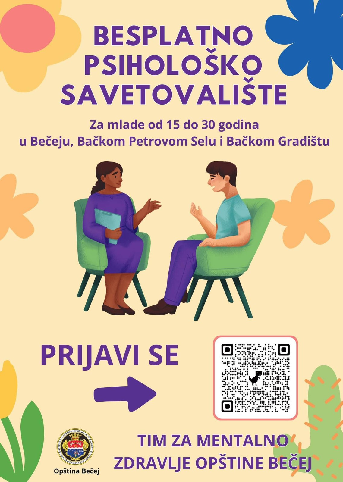 Psiholozima u Savetovalištu za mlade možete se obratiti putem koda na plakatu ili direktno postavljanjem pitanja na sajtu u odeljku Kontakt.